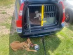 Dad always gets VIP parking at the Marcus sized pooch meet which is great as me can jump in the cage and have a little rest or drink of water without trying to find a full water bowl elsewhere. The cage and water bowl is only for members of the Marcus pooch club me has decided. Me and Fallon played with a pooch called Peanut. It seems me makes a new friend most weeks.