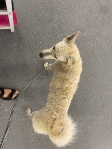 Pretty good for a first session – we have booked another one for next week. I also plan to take him there just to have sniffs without having a swim session – that way it won’t always be associated with water. He might even get a proper grooming session there one day.