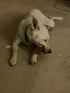 Then me unburied it and took it into the house – along with mud and muddy paws.